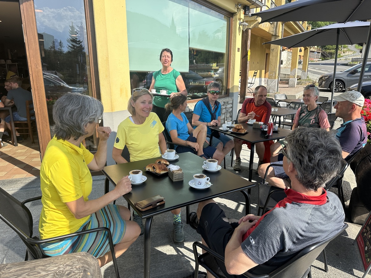 Der dritte Tag wurde zu unserem Shuttletag. Zwei Guides von Aosta Valley Freeride mit zwei Autos samt Anhänger und Driver zeigten uns eine Vielfalt an Trails rund um Aosta. Zwar starteten wir den Tag mit zwei Platten (am gleichen Bike!) in der ersten Abfahrt, danach blieben wir aber verschont, auch wenn die eine oder andere Blessur davongetragen wurde… Manchmal musste man das Herz in die Hand nehmen und manchmal half absteigen, aber im Grossen und Ganzen trafen die Guides unser Niveau ziemlich gut und die Abfahrten machten grossen Spass. Am Ende resultierten 2850 Tiefenmeter gegenüber 128 Höhenmetern! Zur Belohnung gab’s Gelati, im Becher, im Biskuit oder sogar im Brioche (jedem seinen Geschmack…). Natürlich hiess es auch an diesem Abend wieder: duschen, umziehen, durch die Gassen schlendern, Apéro, Nachtessen, schlafen.