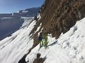 Kaiserwetter und ideale Lawinenverhältnisse aber erst ab ca. 1500müM eine geschlossene Schneedecke. Wir steigen ab dem Hengst Richtung Ochsen auf, fahren durch die Riprächtepochte ostwärts ab gegen Mittliste Morgete. Der Aufstieg führt uns auf den Schiebespitz, wo uns der Chessel zu einer erneuten Abfahrt einlädt. Über den Leiterlipass gelangen wir zurück zur Wasserscheide.