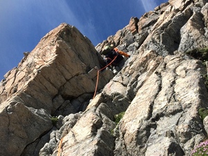 In der Hütte angekommen mussten wir zuerst unseren Durst löschen. Willi stieg dann noch etwas weiter auf um sich einen Überblick der Felsen des Piz Roseg zu schaffen. Leider war es zu nass um am nächsten Tag den Grat zu klettern (Wassereis) und daher war schon bald klar, dass wir auf unser Alternativprogramm den Piz Morteratsch umsteigen mussten/durften. Dies hiess dafür, ausschlafen.☺️ Um 5.00 Uhr gabs Frühstück, ca. 5.30 Uhr liefen wir in einem angenehmen Tempo los Richtung Fuorcla da Boval. Am Anfang noch etwas steinig, dann aber schon bald auf dem Tschiervagletscher. Wir bildeten 3 Zweierseilschaften (Willi und Hanspeter, Sandra und Livia und zum Schluss noch Glöisi und Ruth. Um ca. halb neun sind wir oben auf dem Gipfel angekommen und genossen den wunderschönen Blick auf die weissen Bündnerberge. Den Abstieg bezwangen wir dann mit Kletterei zur Bovalhütte, wo wir uns zur Belohnung noch einen leckeren Früchtekuchen gönnten. Trotz Alternativprogramm war es für uns alle ein super Wochenende!