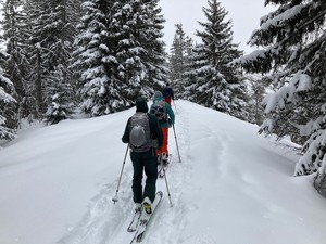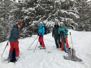 Um 07.15 klingelte der Wecker, noch schnell die Sandwiches streichen, den Tee aufgiessen und los geht’s. Mit dem Zug bis nach Spiez, anschliessend sind wir, Sandra, Thomas, Rita, Serafina und Michel, mit dem Posti nach Aeschieried gefahren. Nach dem Auffellen machten wir einen doppelten LVS-Check und sind los „getürelet“. Um unsere LVS-Skills noch zu verbessern, versteckten wir in der Hälfte der Tour zwei LVS, welche anschliessend erfolgreich „gerettet“ wurden. Die letzte Teil des Aufstiegs führte uns durch eine wunderschöne verschneite Winterwaldlandschaft. Schneefallbedingt pausierten wir nur für kurze Zeit, und machten uns auf Richtung Thunersee.