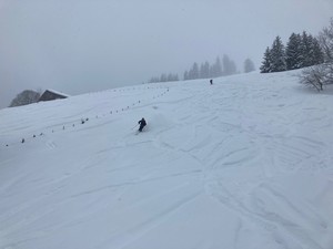 Auf uns warteten rund 1000Hm feinster Pulverschnee. Über Wiesen und durch Wälder sausten wir bis Leissigen. Trotz des anhaltenden Schneefalls eine perfekte Skitour. Vielen Dank Sandra für die super Leitung.