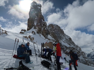 Unsere letzte Tour führt uns mit Seilbahn und Sessellift wie vorgestern ins Skigebiet Torrent. Ab der obersten Bergstation erreichen wir nach knapp 400Hm das Torrenthorn (2997m). Ein herrlicher Rundblick bietet sich an. Das Wetter ist heute perfekt, ein strahlend schöner Morgen. Die Abfahrt oben zuerst flach auf leichtem Pulverschnee, danach 600m steil hinunter auf den Boden vom Wysse See, bombastisch! Den Galmpass (2865m), unterhalb des Mauerhorns erreichen wir durch eine unwahrscheinlich schöne weisse Dünenlandschaft in bester Laune. Eine kurze Pulverschneeabfahrt bringt uns zum Ausgangspunkt unseres letzten Aufstiegs auf den Ferdenpass oder den Müllerstein (2821m). Nun folgt auch die lange Abfahrt, steile Pulverschneehänge, Felsbänder, da schlagen alle Herzen höher, die Augen strahlen, man könnte jauchzen. Leukerbad erreichen wir auf dem nassem Kleberschnee eines Alpsträsschens und der Piste.
