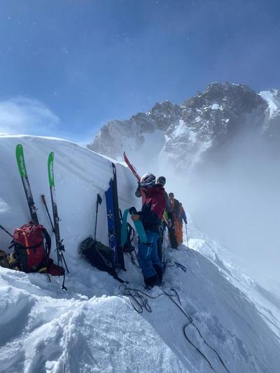 Der letzte Tag unserer dreitägigen Monte-Rosa-Tour verlief mit einer schönen Route, die uns wieder zurück nach Zermatt führte. Nach einem frühen Start und einem kurzen Marsch auf den Fellen mussten wir die Ski auf den Rucksack binden und einen kurzen «Klettersteig» überwinden. Nachdem wir uns auf der anderen Seite abgeseilt hatten, führten wir unsere Tour Richtung Stockhorn fort. Nachdem wir eine weitere schöne Gletscherebene überwunden hatten, konnten wir unsere Ski auf dem Stockhornpass abfellen und uns für die Abfahrt vorbereiten.