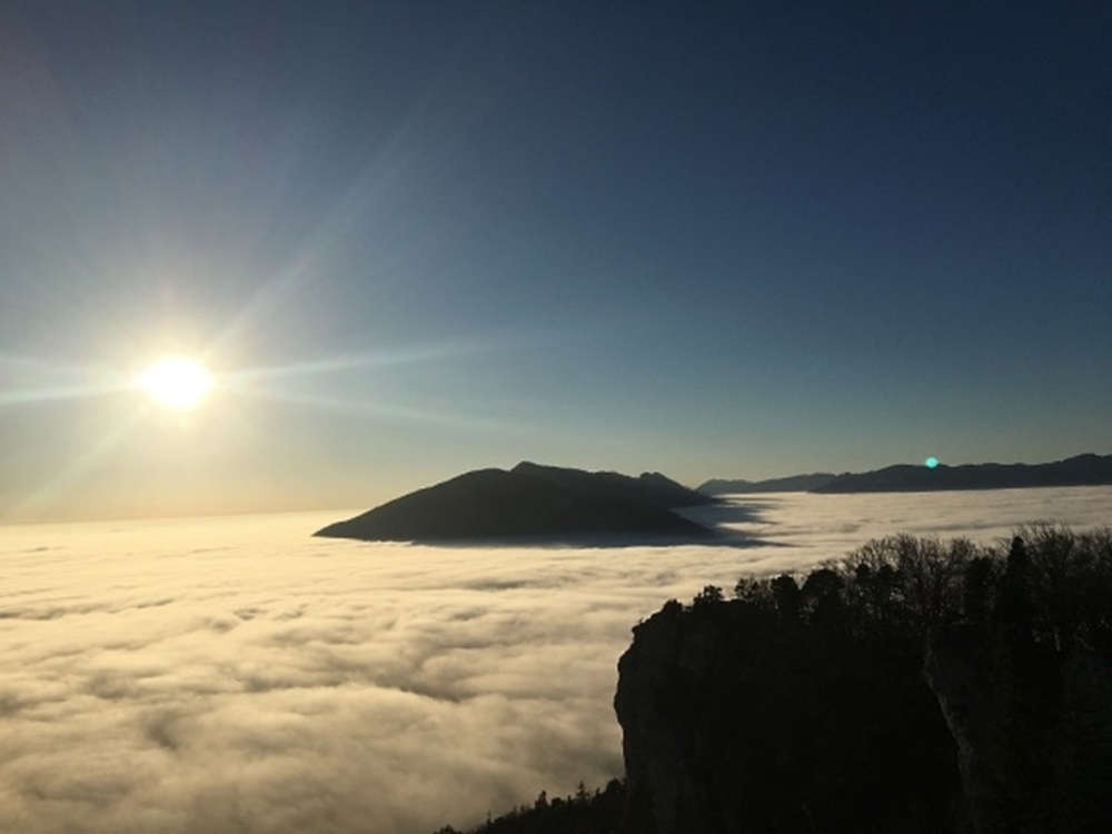 Route / DetailsRassige Kalkplatten (5a-6a) über dem Nebelmeer.